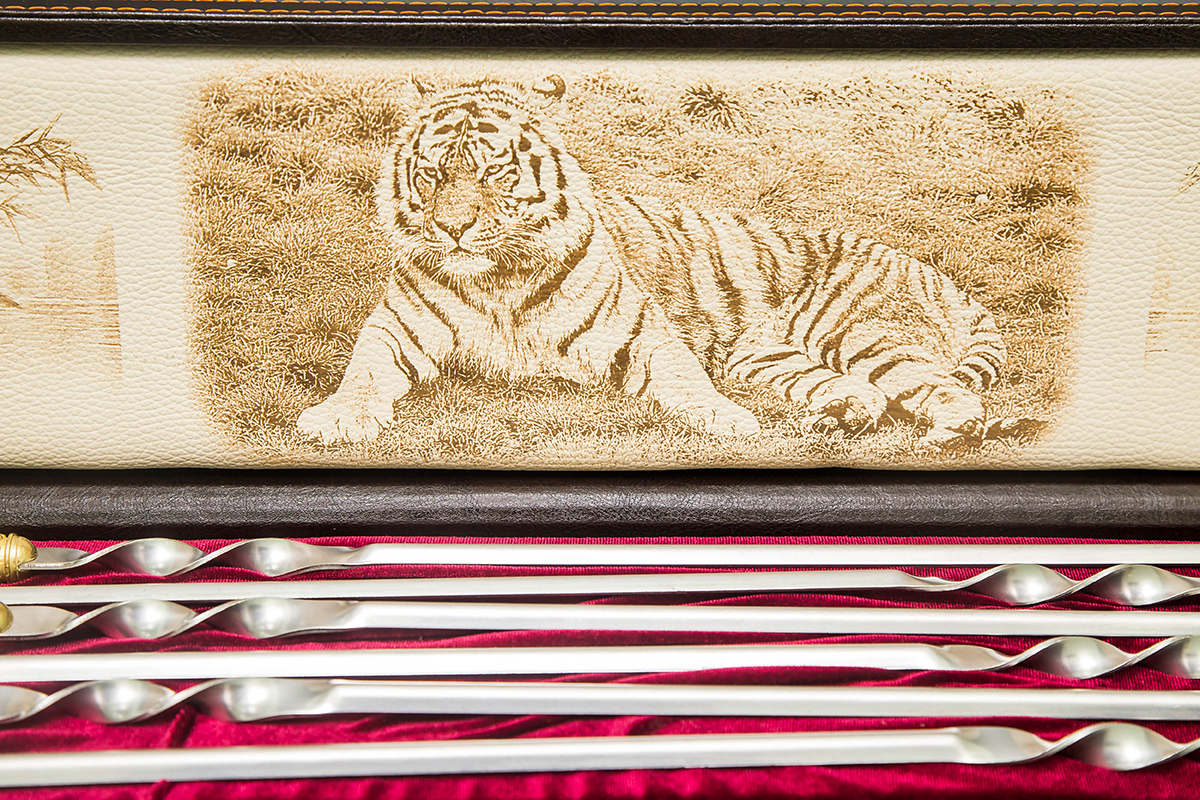 Нож «Набор Шкатулка №2.2 (Оскал тигра, рисованный, красный бархат)» — Артикул: 65854