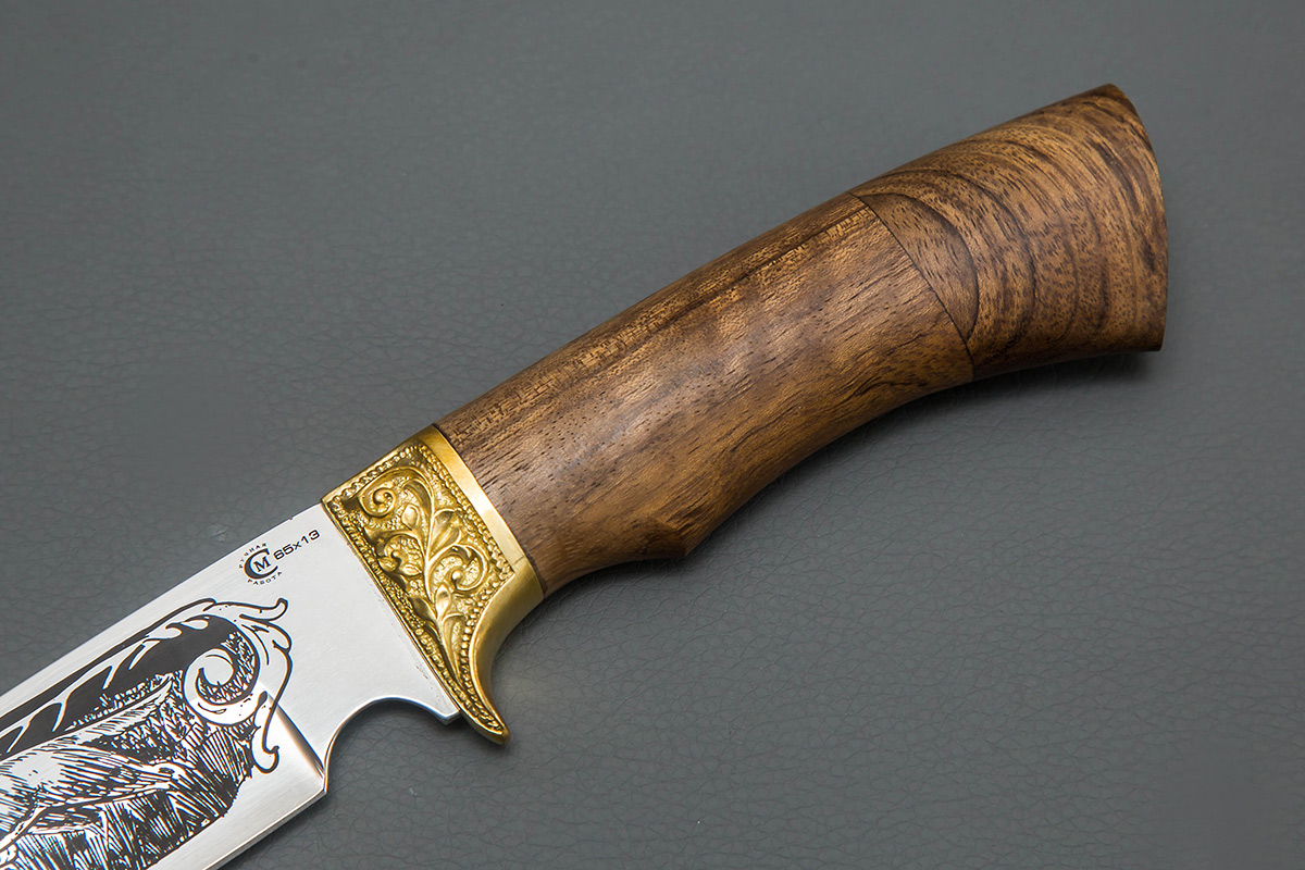 По вашему желанию любой нож может быть сделан из других материалов с уникальной гравировкой на клинке и рукояти.