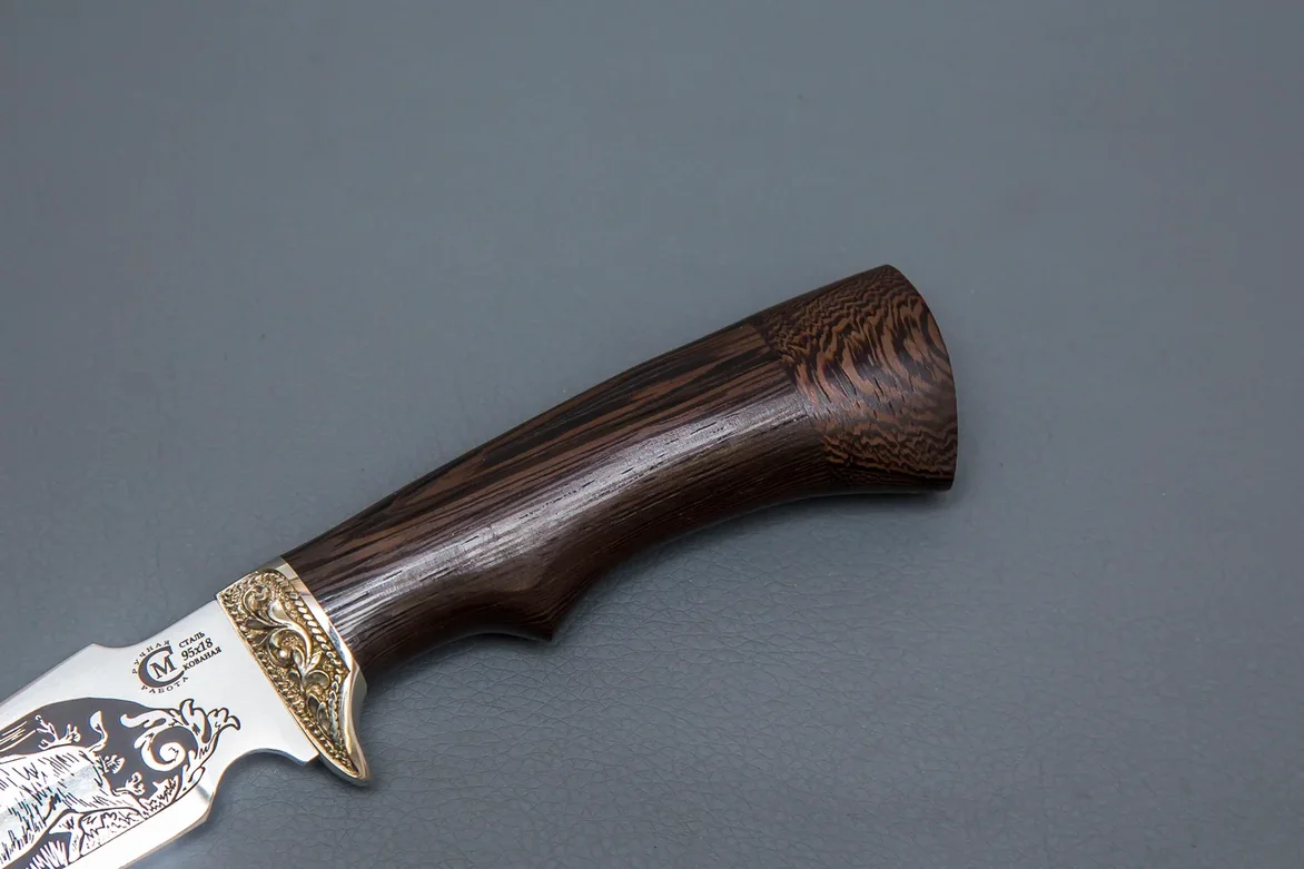 По вашему желанию любой нож может быть сделан из других материалов с уникальной гравировкой на клинке и рукояти.