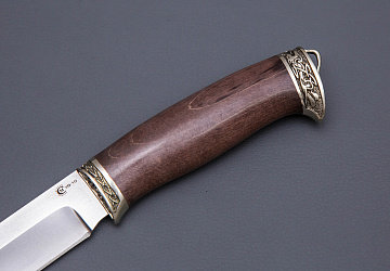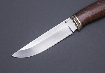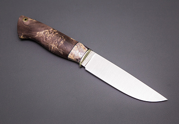Нож из стали  M398 «Ястреб», рукоять притин мельхиор, стабилизированный кап клена