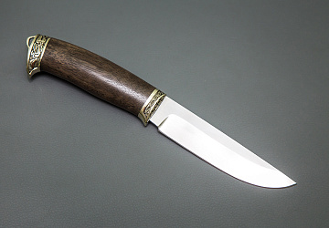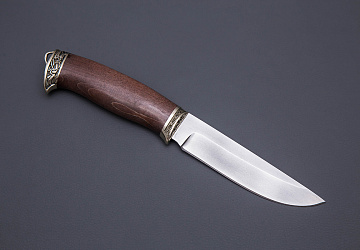 Нож из стали  M398 «Ястреб», рукоять притин мельхиор, айронвуд