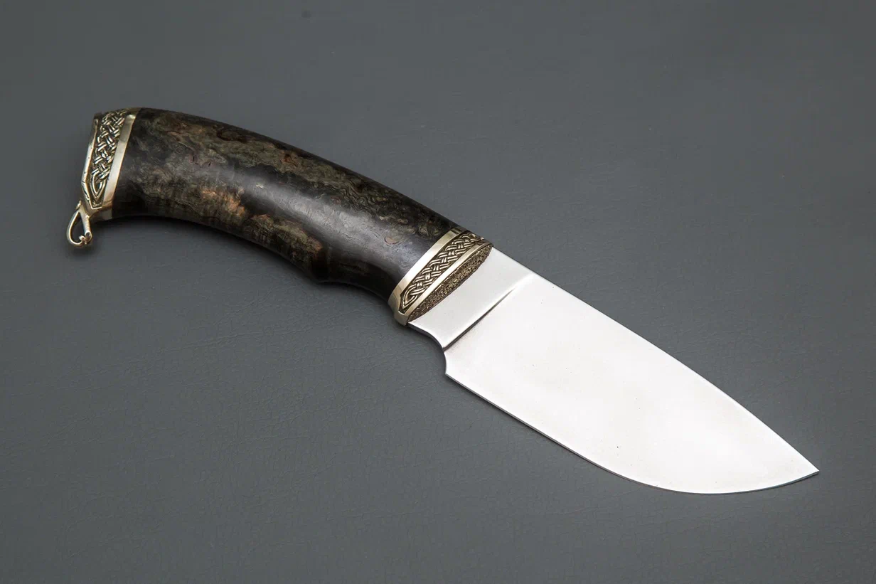 Нож из стали PGK «Разделочный», рукоять притин мельхиор, стабилизированная карельская береза