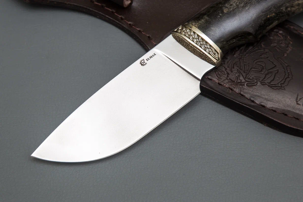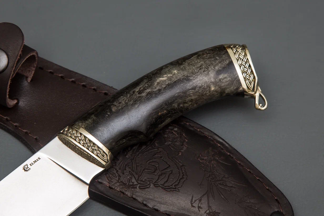 Нож из стали Elmax «Разделочный», рукоять литье мельхиор, стабилизированная карельская береза