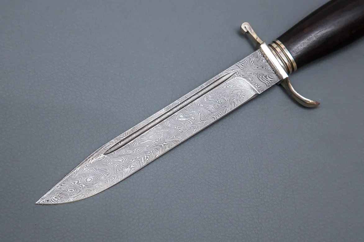 Нож из дамасской стали «Разведчик», рукоять литье мельхиор, черный граб