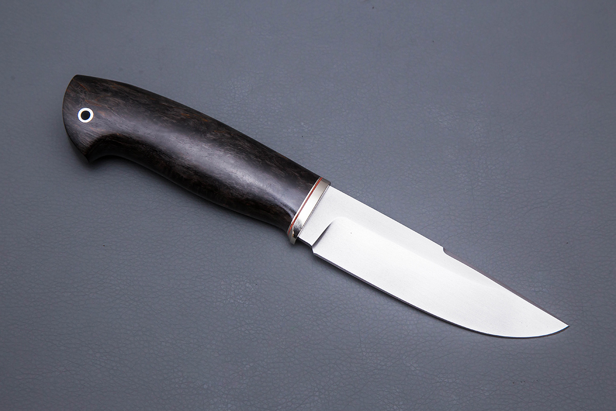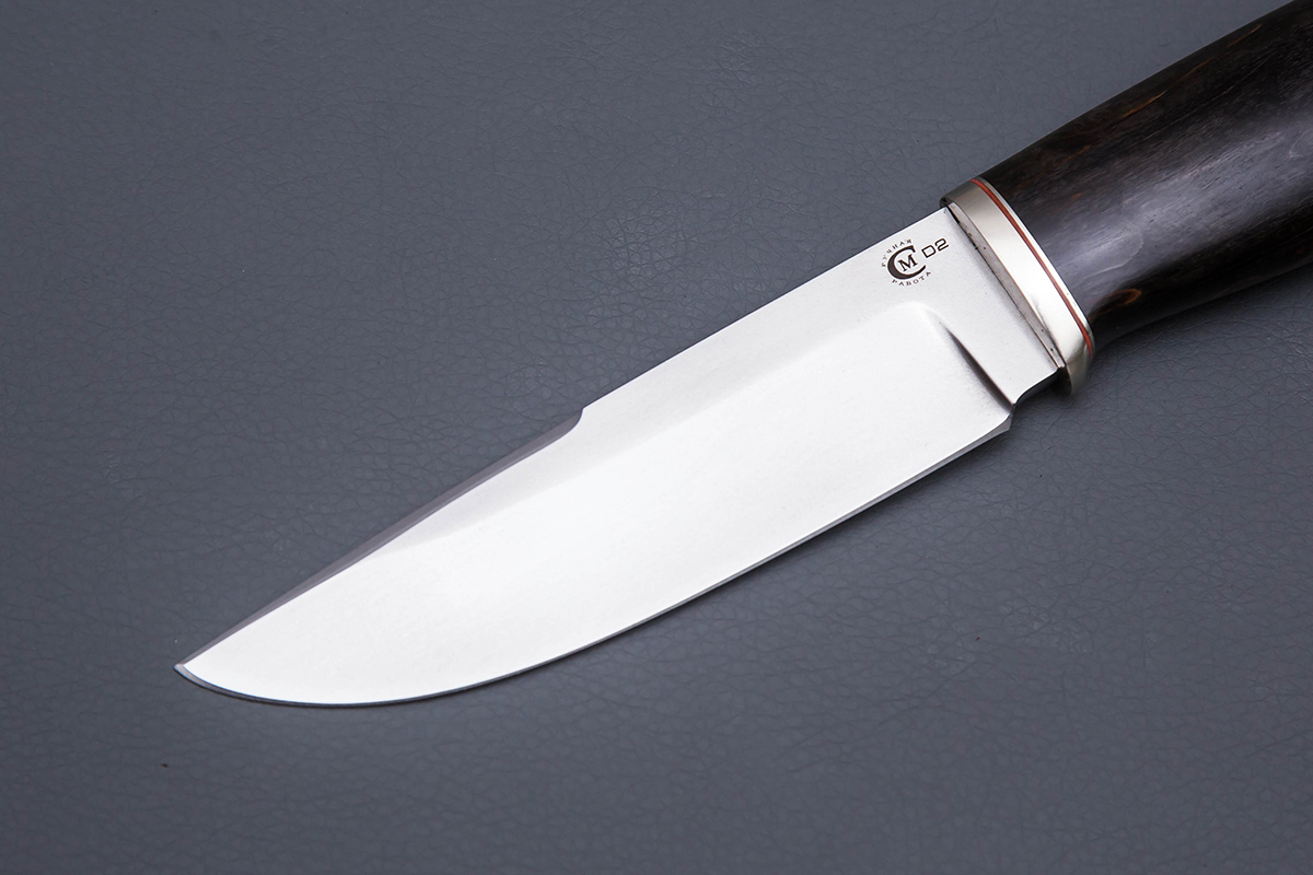 Нож из стали D2 «Соболь», рукоять литье мельхиор, стабилизированная карельская береза