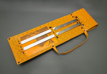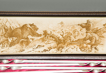 Шашлычный набор «Шкатулка №2.1 (Звери: каменные головы, рисованный, кожзам/красный бархат)»
